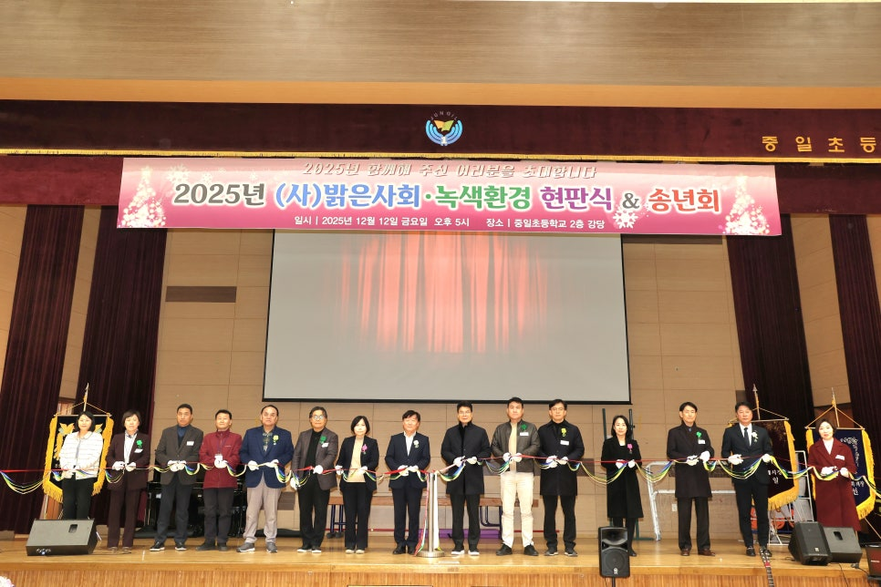 안녕하세요! (사)밝은사회·녹색환경입니다. 지난 12월 12일 금요일, 우리 단체에게는 아주 역사적이고 뜻깊은 행사가 있었습니다. 바로 법인으로서의 새로운 출발을 알리는 「2025년 창립기념 현판식」과 한 해를 마무리하는 「송년회」가 열렸는데요. 200여 명의 회원님들과 내빈 여러분이 함께해주셔서 더욱 빛났던 그날의 뜨거운 현장을 소개합니다! 이번 행사는 1998년 용인시 환경운동연합 산하단체로 시작하여, 지난 20여 년간 묵묵히 환경보전 활동을 이어온 우리가 2025년 7월 1일 사단법인으로 전환된 것을 기념하는 자리였습니다.